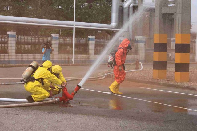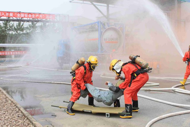 6月21日上午,9時40分,江山股份氯氣站一輛裝有20噸液氯的槽罐車在接卸液氯作業(yè)時,管道“發(fā)生”氯氣泄漏,氯氣向周邊擴散,影響了附近企業(yè)和居民的人身安全……這是南通市氯氣泄漏事故應急綜合演練中的一幕。 由市政府主辦、江山股份承辦的南通市氯氣泄漏事故應急綜合演練是2012年南通市安全生產月的“重頭戲”, 此次應急演練重在提高政府、職能部門、企業(yè)應對危險化學品事故的應急處置能力,最大限度減少因安全生產事故給企業(yè)和人民群眾造成的財產損失和人員傷亡。 由于氯氣是具有刺激性氣味的有毒氣體,可以溶解于水,因此應急處理主要是通過噴灑形成水霧的方法來降低氯氣濃度,控制擴散范圍?,F(xiàn)場用紅色煙霧代替黃綠色氯氣。演練中,市安監(jiān)、公安、消防、環(huán)保、質監(jiān)、衛(wèi)生、氣象等部門積極聯(lián)動,各司其職,氣象部門提供風力、溫度、濕度等實時數(shù)據(jù),環(huán)保部門負責空氣中氯氣含量檢測,公安負責交通管制和疏散救援……僅用了不到40分鐘即圓滿完成了泄漏源堵漏和周邊企業(yè)及居民的疏散工作,充分展示并檢驗了市政府、職能部門及企業(yè)應對危險化學品事故的應急處置能力。 副市長徐輝擔任現(xiàn)場總指揮,并對演練做了綜合點評。江山股份董事長李大軍觀摩現(xiàn)場演練,總經理薛健任現(xiàn)場副指揮。