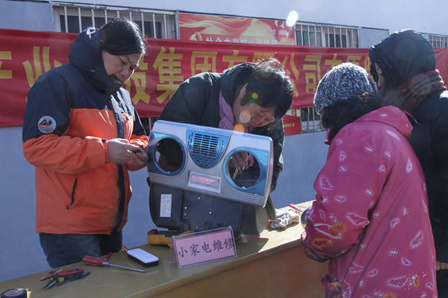 通科志愿服務(wù)隊(duì)熱心的服務(wù)和友善的態(tài)度得到了社區(qū)居民的嘖嘖稱贊,每場(chǎng)活動(dòng)前來(lái)咨詢和尋求幫助的居民絡(luò)繹不絕,提供健康咨詢的張躍明醫(yī)生、配鑰匙的倪武龍師傅、維修小家電的唐玉芳和宋玉娟兩位女師傅都在寒風(fēng)凜凜的廣場(chǎng)忙的不亦樂(lè)乎。唐師傅說(shuō),自己就住在郭里園社區(qū),能夠?yàn)樽约旱泥従觽兲峁┓?wù),心中無(wú)比開心,希望憑借自己的特長(zhǎng)為社會(huì)多做些實(shí)在的事情