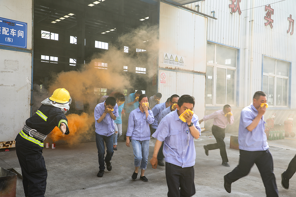隨后,進行了 “安全生產(chǎn)月”主題橫幅簽名活動和全體人員合影。在啟動儀式當天,南通機床還組織開展了消防應急演練,其內(nèi)容包括人員應急疏散、傷員急救、微型消防站演練、100米接力滅火等消防救援項目。天生港消防救援中隊李隊長就南通機床應急演練作了點評,他要求每位參與者學會滅火器正確使用方法,掌握火場逃生基本常識,提高自我保護意識,化解風險自救能力,達到應急演練的預期目的。