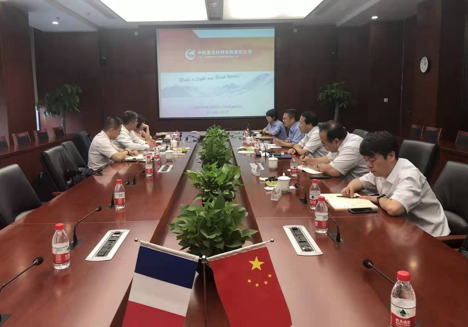 2019年7月16日,空客公司復(fù)合材料和化工采購副總裁Cedric THIBOUT、中國及東亞采購部經(jīng)理王昕巖和項目經(jīng)理蔣薇訪問了航空工業(yè)復(fù)材。航空工業(yè)復(fù)材董事長曹正華、總經(jīng)理孟凡君接待了來賓。國際合作辦公室、蜂窩及芯材事業(yè)部相關(guān)人員出席了會談。