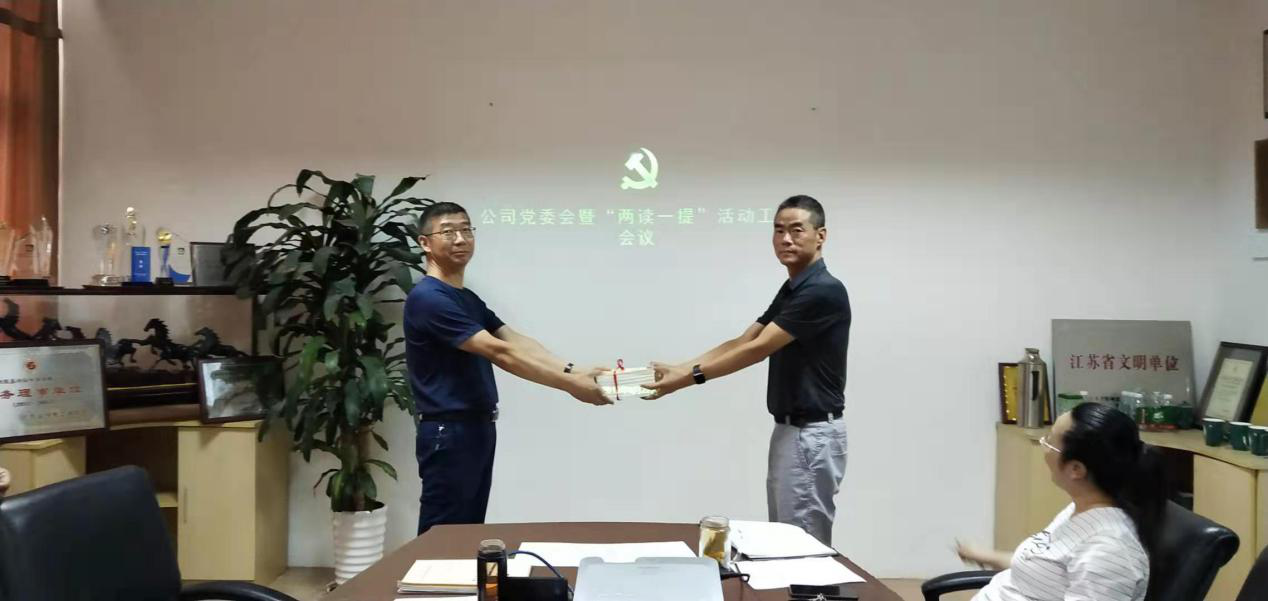 為進(jìn)一步推進(jìn)公司“不忘初心,牢記使命”主題教育開展,落實(shí)公司黨委“兩讀一提”活動(dòng)部署,促使黨員、干部養(yǎng)成良好讀書習(xí)慣,進(jìn)一步加強(qiáng)基層支部黨建工作建設(shè)、提升黨員、干部思想政治水平,8月22日下午,南通紡織控股集團(tuán)紡織染有限公司黨委組織開展了“紅色贈(zèng)書”活動(dòng)。公司黨委書記、董事長李志宏、黨委副書記盧李星等出席活動(dòng)。 活動(dòng)中,李志宏同志分別向本部黨支部、崇天黨支部依次贈(zèng)送《習(xí)近平新時(shí)代中國特色社會(huì)主義思想學(xué)習(xí)綱要》《不忘初心·牢記使命專題十講》、《黨員發(fā)展對(duì)象培訓(xùn)教材(2019年版)》《國有企業(yè)紀(jì)檢監(jiān)察工作手冊》等書籍。其中《習(xí)近平新時(shí)代中國特色社會(huì)主義思想學(xué)習(xí)綱要》為全體黨員人手一本。
