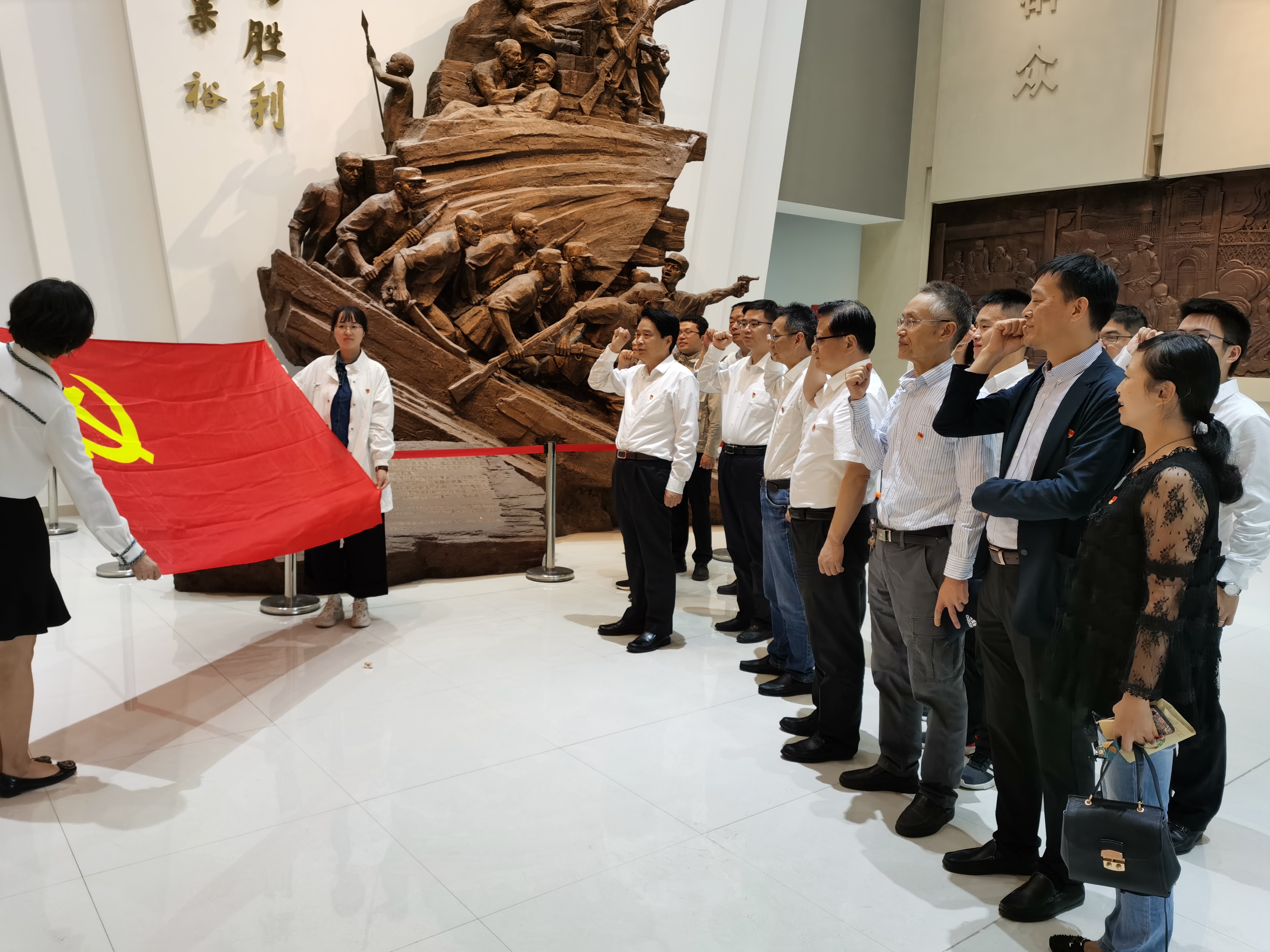 參觀過程中,全體人員都懷著無比崇敬、無比敬仰的心情,仔細觀看了陳列館內(nèi)的革命文物、先輩遺物、先烈生平、歷史照片和戰(zhàn)爭實物等。這些珍貴的革命遺物和大量的歷史資料,向人們真實展現(xiàn)了在那段艱苦的革命歲月里,我們的革命先輩在中國共產(chǎn)黨的堅強領(lǐng)導(dǎo)下,為了抵御侵略奮勇反抗、為了民族獨立浴血奮戰(zhàn)、為了人民解放頑強斗爭。讓全體人員都深切感受到中國共產(chǎn)黨人為追求理想真理、謀求人民幸福所作出的巨大犧牲和建立的不朽功勛。參觀活動結(jié)束前,集團黨委書記、董事長杜永朝同志帶領(lǐng)全體人員,面對鮮紅的黨旗,重溫入黨誓詞。