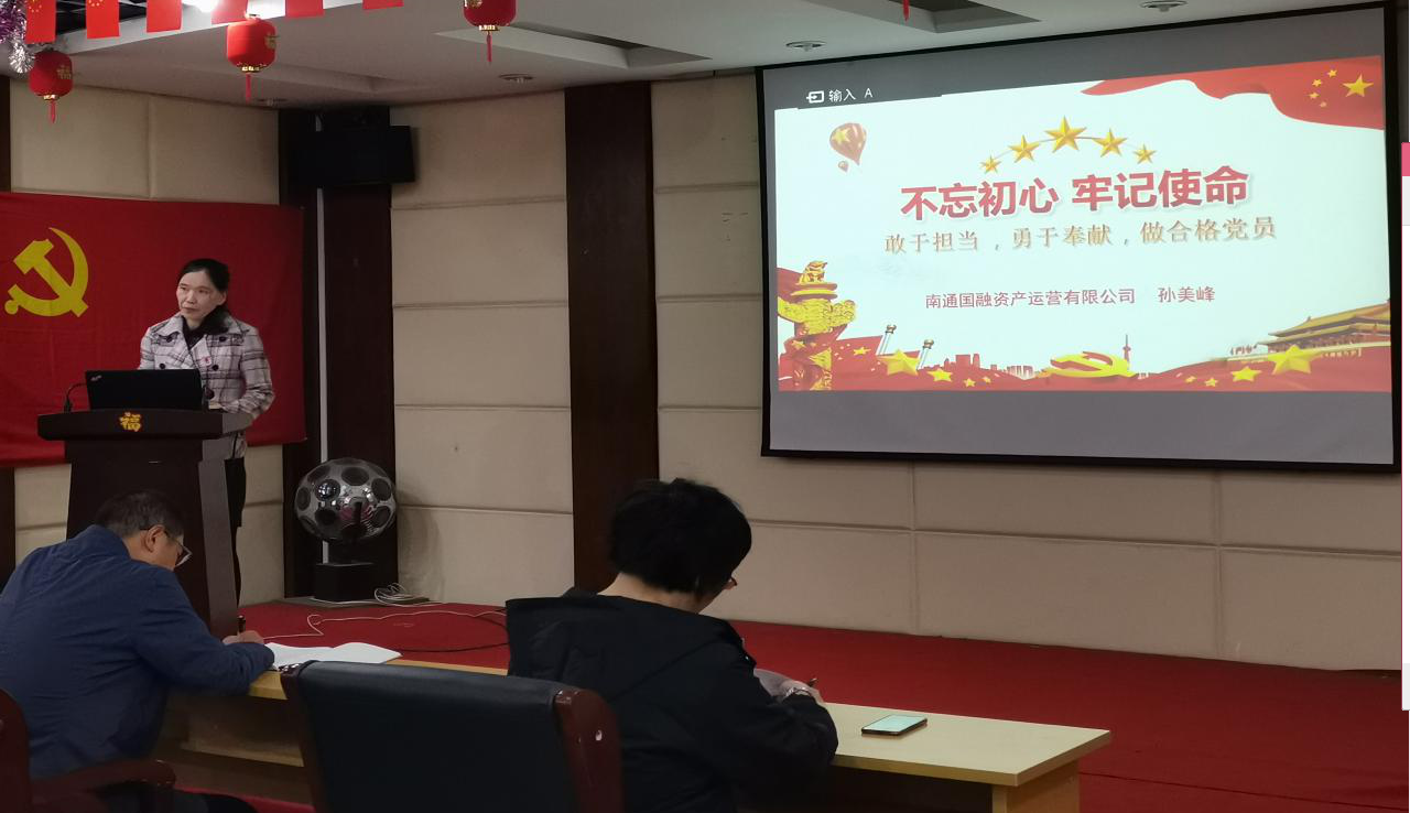 10月24日,南通國融資產(chǎn)運(yùn)營有限公司黨委委員、工會(huì)主席孫美峰結(jié)合“不忘初心、牢記使命”主題教育給公司全體員工上了一堂題為“敢于擔(dān)當(dāng),勇于奉獻(xiàn),做合格黨員”的專題黨課。