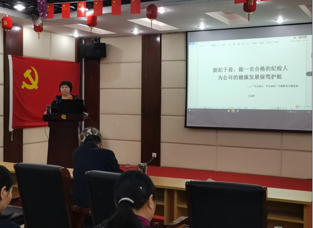 人民對美好生活的向往,就是我們的奮斗目標。課上一幅幅老照片鮮明地展示了在共產(chǎn)黨人的領(lǐng)導下,中國這個世界最大的發(fā)展中國家在短短四十年里擺脫了貧困并躍升為世界第二大經(jīng)濟體,創(chuàng)造了人類社會歷史上驚天動地的發(fā)展奇跡,使中華民族煥發(fā)新的蓬勃生機,中華民族正以嶄新的姿態(tài)屹立于世界的東方。 王冠榮結(jié)合自己的工作崗位和經(jīng)歷,提出了紀檢人的“初心和使命”:挺紀于前、純潔黨的隊伍、做黨和人民的忠誠衛(wèi)士。一個個鮮活的腐敗案例,一個個催人警醒的反面典型,使每個人都得到心靈上的“洗禮”,從而進一步筑牢崗位廉政“防火墻”。她指出要加強對年輕干部的教育引導,讓他們從進入干部隊伍就知道守紀律、講規(guī)矩的重要性和嚴肅性,明白在黨內(nèi)不守紀律、不講規(guī)矩,跟組織玩小聰明,權(quán)欲膨脹、利欲熏心,不擇手段往上爬,為了自己什么事都敢干,總有一天會自己毀了自己的。 她要求黨員干部要勇于擔當作為、發(fā)揮先鋒模范作用,做好“五帶頭”:帶頭學習提高、帶頭爭創(chuàng)佳績、帶頭服務(wù)群眾、帶頭遵紀守法、帶頭弘揚正氣,爭做黨的“初心和使命”的實踐者,為公司的高質(zhì)量發(fā)展貢獻自己的一份力量。