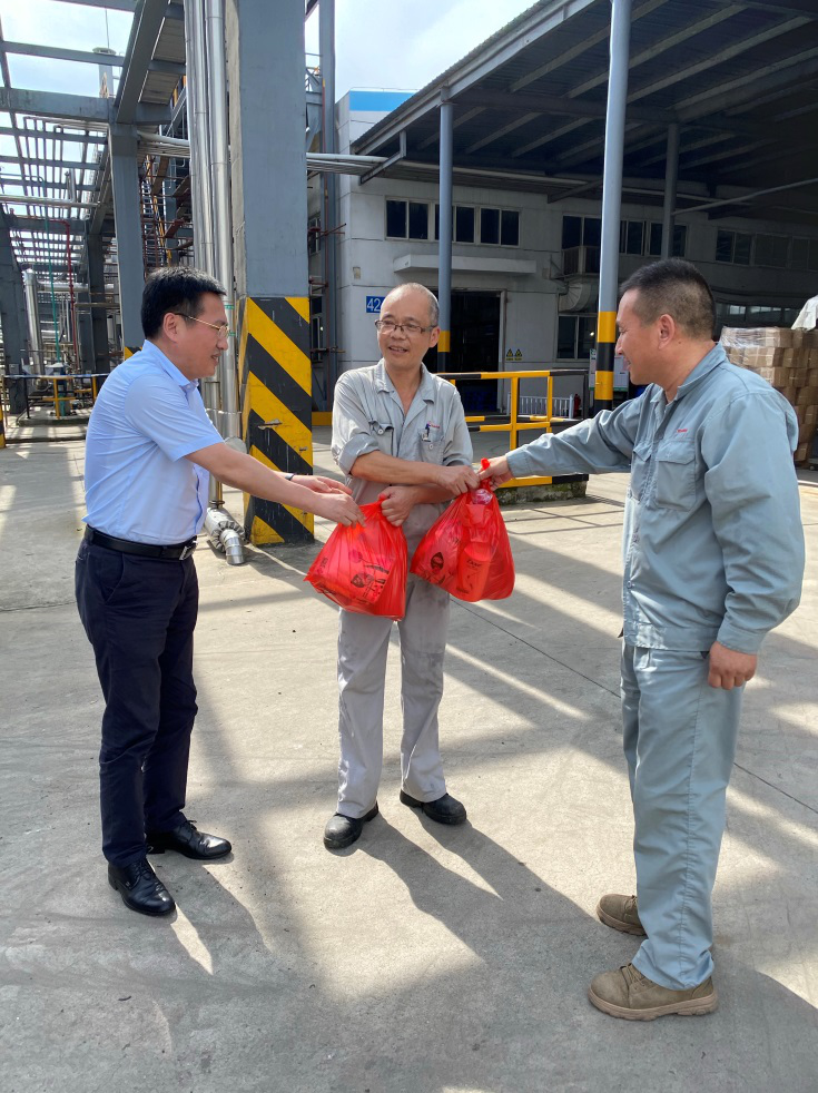 近日,連日高溫,驕陽(yáng)似火。8月 6日下午,南通國(guó)泰創(chuàng)業(yè)投資有限公司黨總支書記、總經(jīng)理沈利帶領(lǐng)綜合管理部、資產(chǎn)管理部的相關(guān)同志到江山農(nóng)化、興盛木業(yè)等公司,看望、慰問酷暑中仍堅(jiān)守奮戰(zhàn)在生產(chǎn)一線的公司職工,讓他們?cè)谘籽紫娜绽锔惺艿浇M織的關(guān)懷與溫暖。