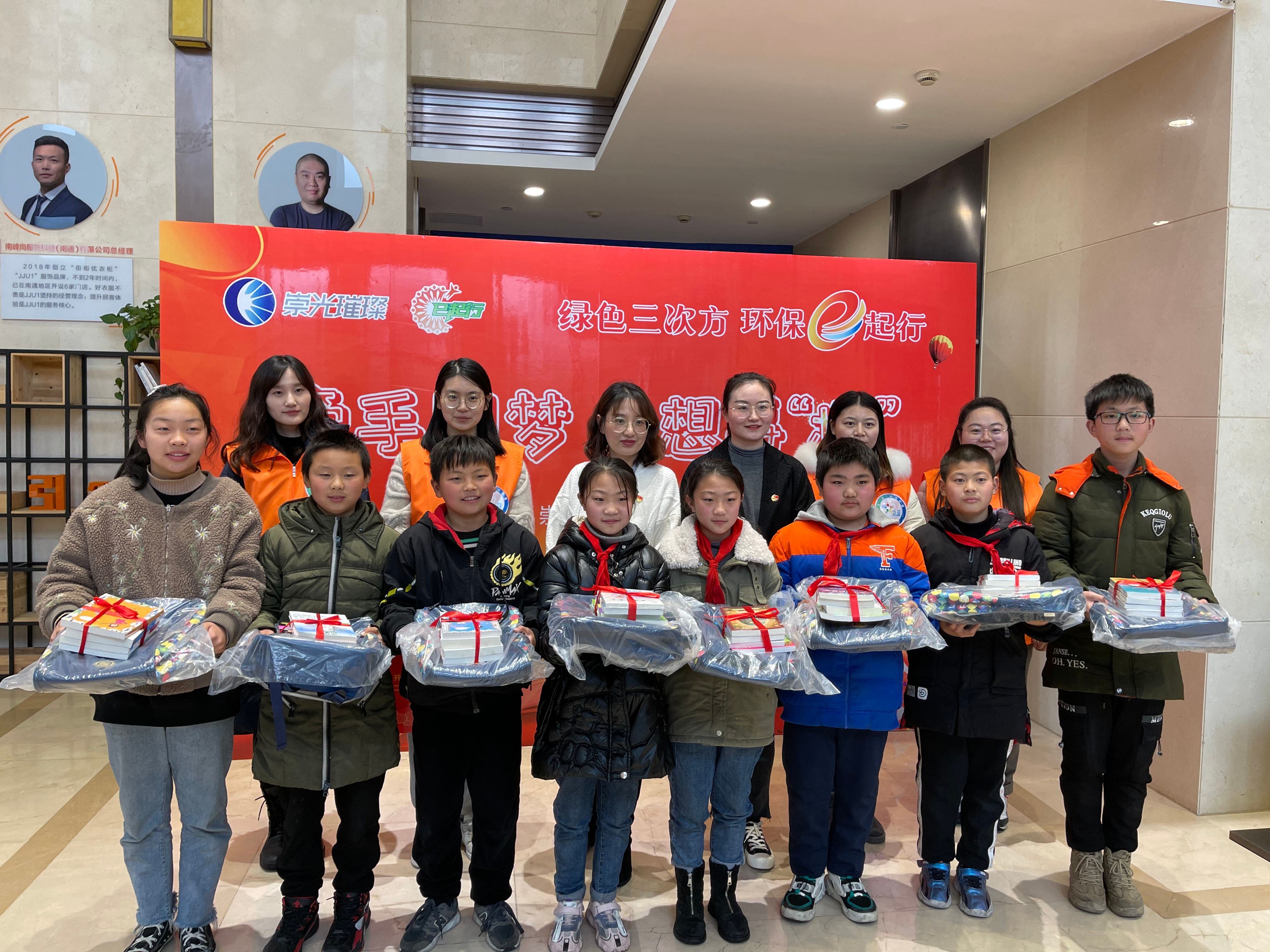 活動第二項內(nèi)容為南通師范第二附屬小學的學生與紅旗小學、文華小學的新市民子女溫暖牽手。經(jīng)過前期的“微心愿”征集,不少新市民學生提出了文具、書籍、書包等“微心愿”,通師二附的學生認領其中部分微心愿,其余心愿則由園區(qū)企業(yè)認領?;顒赢斕欤瑖菆@區(qū)樓宇企業(yè)中由國城公司與濠濱黨員代表向新市民學生贈送了心愿禮物。 雨勢變小后,大家共同種下“友誼”之樹,希望孩子與小樹苗一起茁壯成長。