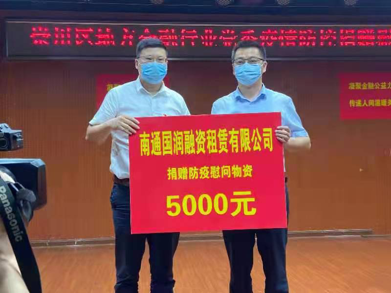 國潤租賃作為南通市融資租賃行業(yè)的領(lǐng)軍人物,第一時間響應(yīng),黨支部副書記吳小兵同志代表公司向抗疫一線社區(qū)捐贈5000元防疫物資,助力于街道及社區(qū)的疫情防控工作。