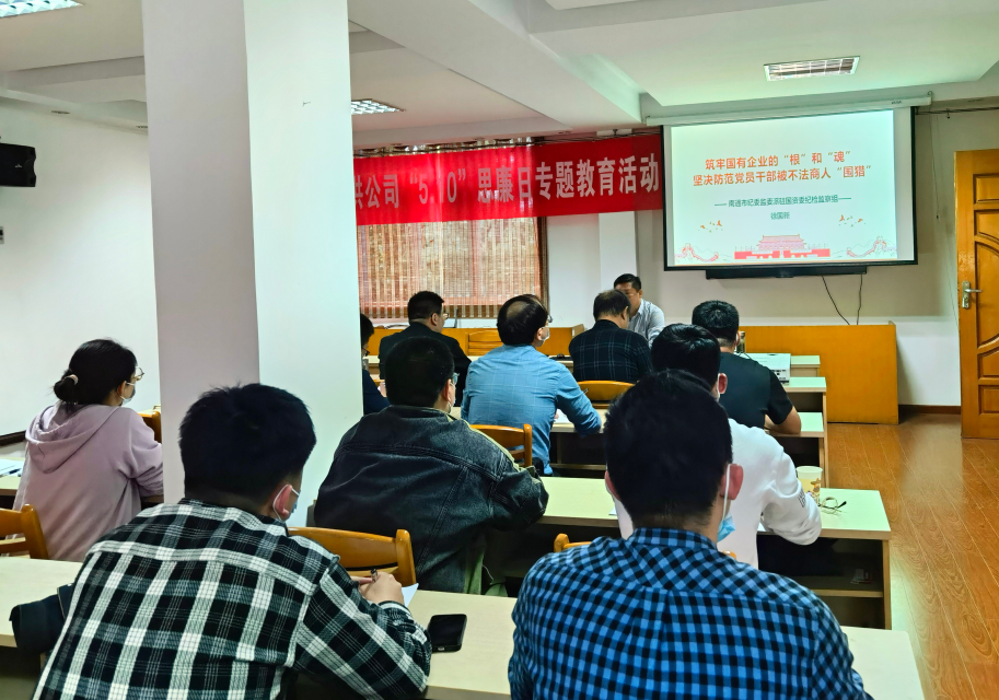 會議邀請南通市紀委監(jiān)委駐國資委紀檢監(jiān)察組組長徐國新作《筑牢國有企業(yè)的“根”和“魂”堅決防范黨員干部被不法商人“圍獵”》專題授課,徐國新圍繞牢固樹立抓好黨建是最大政績理念、將全面從嚴治黨要求貫徹到黨建工作全過程、堅決防范黨員干部被不法商人“圍獵”三方面向詮釋了筑牢國有企業(yè)的“根”和“魂”的重大意義,運用生動典型案例,深刻剖析腐敗產(chǎn)生原因與危害,深入淺出地分析了國有企業(yè)黨風廉政建設(shè)、全面從嚴治黨的核心要點。