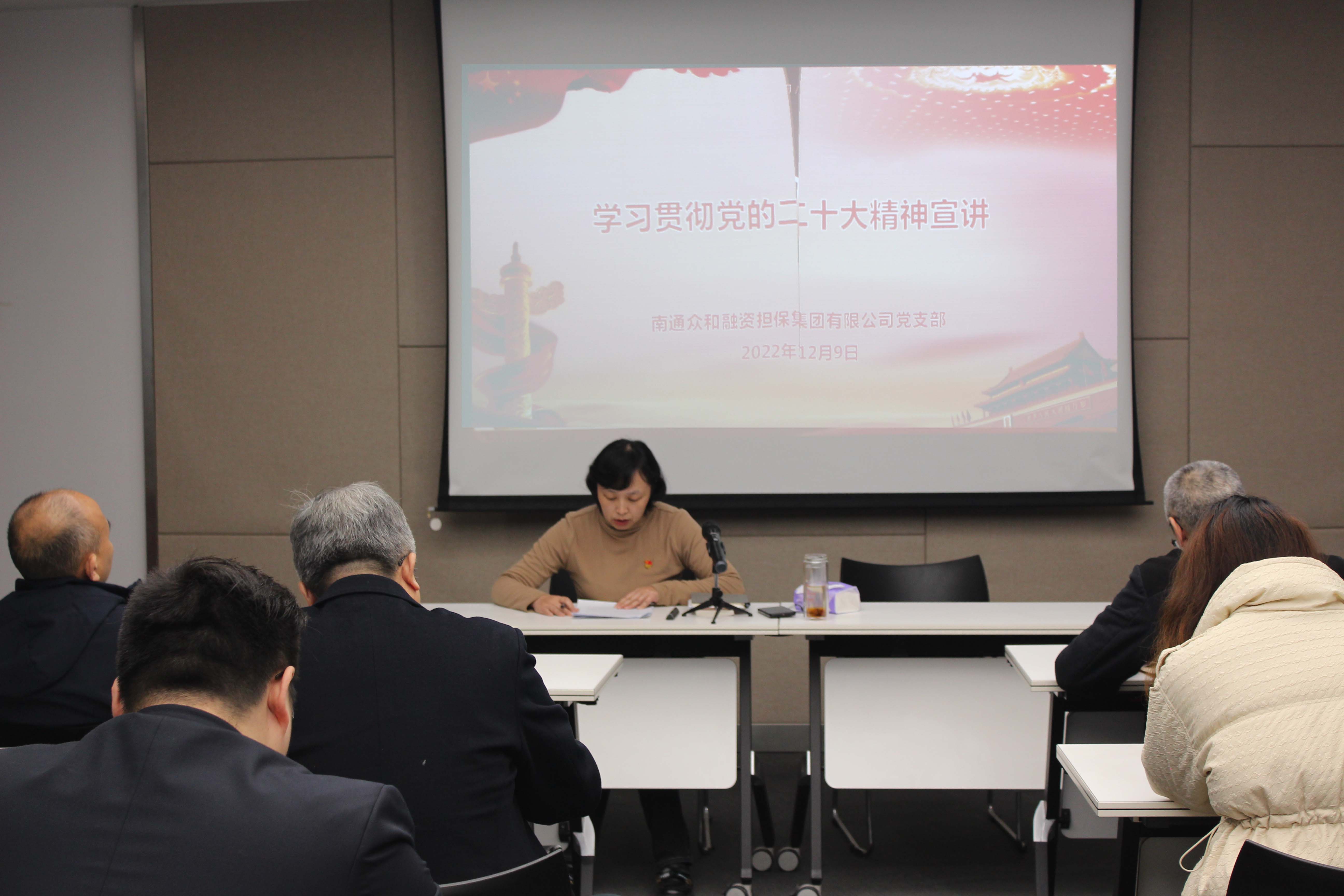 近日,眾和擔(dān)保黨支部組織開展學(xué)習(xí)貫徹黨的二十大精神宣講活動,黨支部書記李瑾作宣講報(bào)告,公司中層以上領(lǐng)導(dǎo)及全體黨員參加活動。