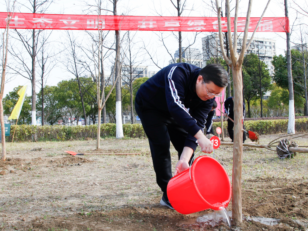 春風(fēng)和煦,萬物萌生,在位于通呂運(yùn)河綠廊星島水岸段的植樹現(xiàn)場,張劍橋董事長、顧建國總經(jīng)理與集團(tuán)其他領(lǐng)導(dǎo)帶領(lǐng)大家一起熱火朝天地?fù)]鍬鏟土、扶苗填坑、培實(shí)新土、提水灌溉。大家熱情高漲、干勁十足、二三人一組、分工協(xié)作,共同種下50余棵紫薇樹苗,牢固樹立和踐行了“綠水青山就是金山銀山”的理念,為推進(jìn)新時代生態(tài)文明建設(shè)、建設(shè)美麗南通貢獻(xiàn)產(chǎn)控力量。