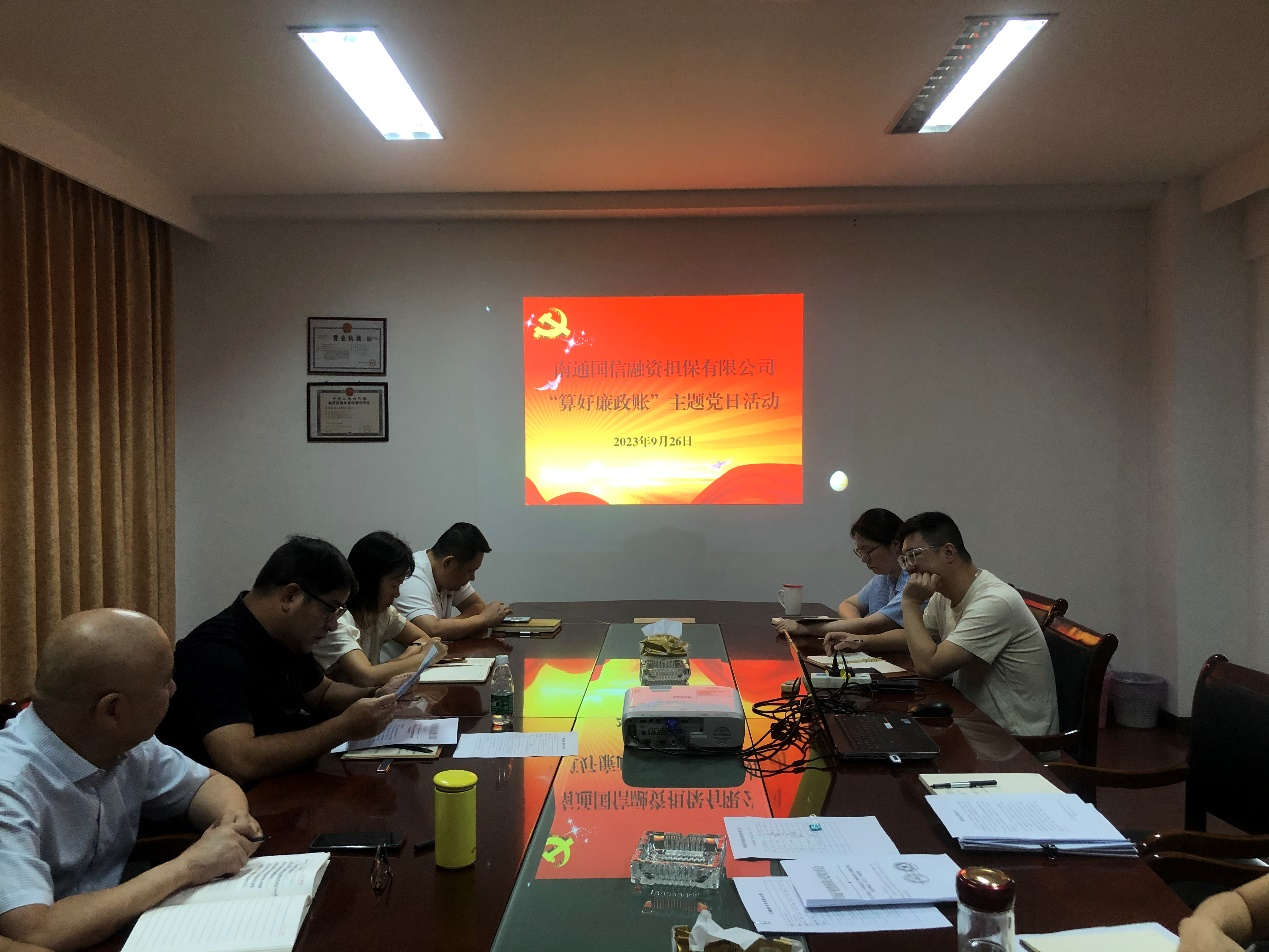 9月26日上午,國(guó)信擔(dān)保黨支部組織開展了“算好廉政賬”主題黨日活動(dòng),公司全體人員參加了此次活動(dòng)。