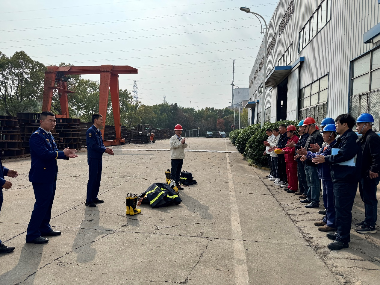 近日,金通靈公司義務(wù)消防隊(duì)全員、集中供氣站作業(yè)人員、全體安全管理人員在公司集中供氣站附近空地整隊(duì)集合,伴隨著消防車的駛?cè)?,本次公司消防?yīng)急拉練活動暨消防技能培訓(xùn)拉開序幕。本次活動特邀觀音山特勤消防站的指戰(zhàn)員作現(xiàn)場指導(dǎo)和講解,企管部(安全管理部)高級總監(jiān)沈毅作現(xiàn)場動員。